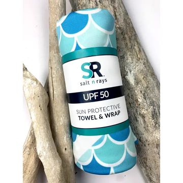 Salt and chlorine resistant, breathable beach towel and wrap designed to protect your skin from the sun's harsh rays. Perfect for the beach, boat, pool or sports field. This cooling fabric is great for providing shade from the sun when none is available.